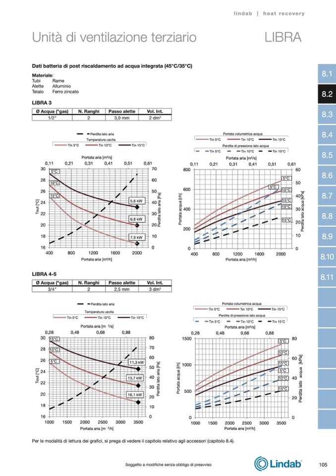 Dati batteria di post riscaldamento ad acqua integrata (45°C/35°C)