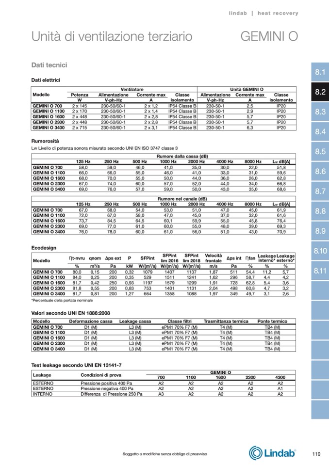 Lw Livello di potenza sonora misurato secondo UNI EN ISO 37
