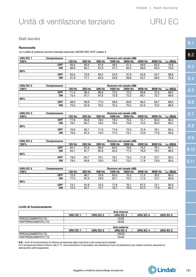 Lw Livello di potenza sonora misurato secondo UNI EN ISO 3747 classe 3