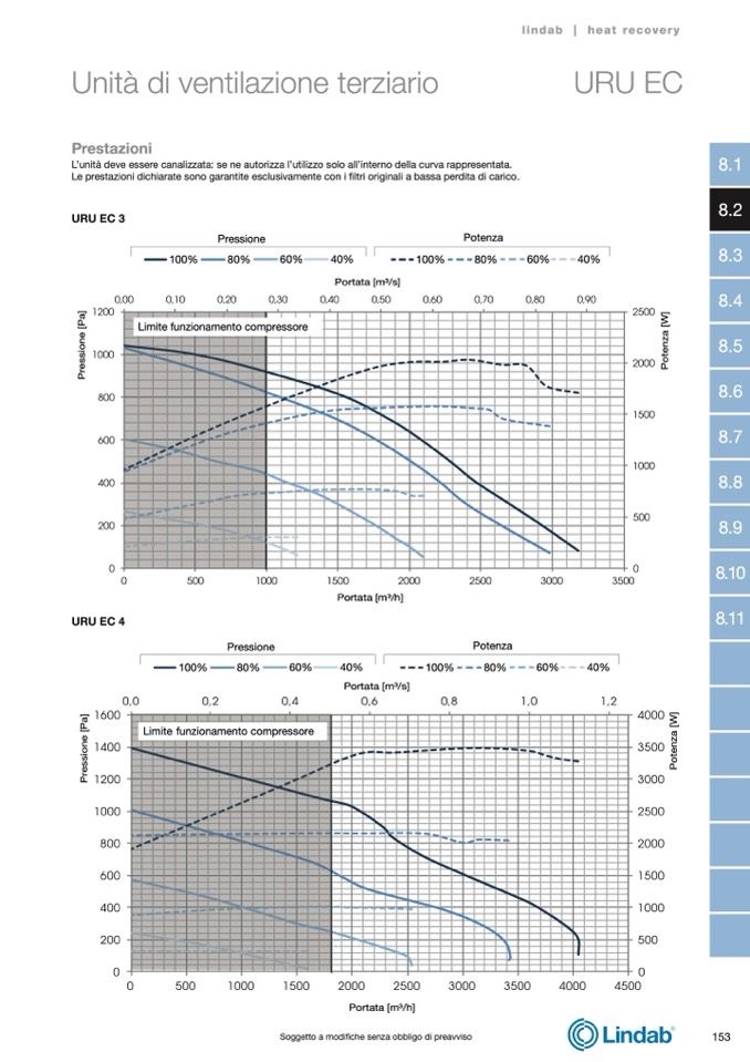 L’unità deve essere canalizzata: se ne autorizza l’utilizzo solo all’interno della curva rappresentata.