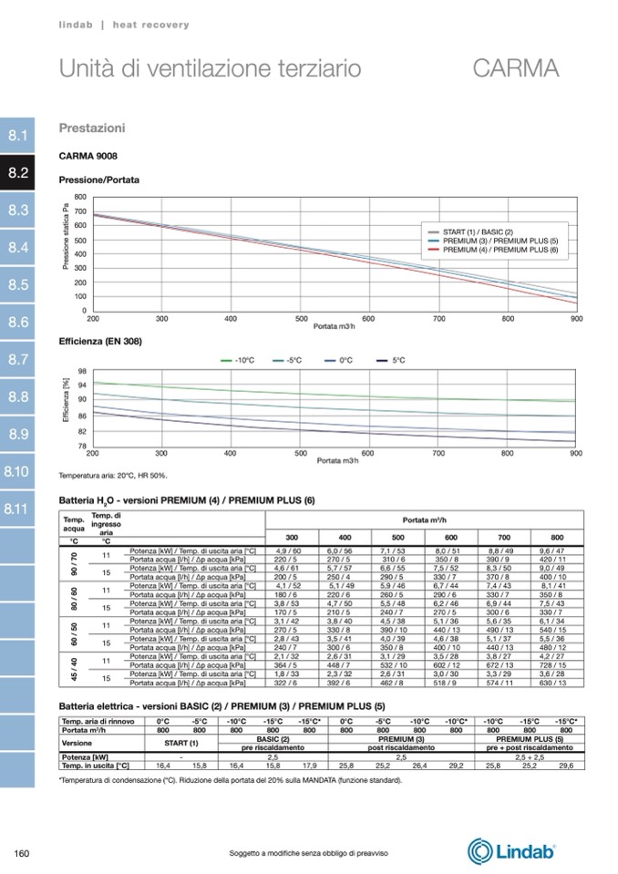 *Temperatura di condensazione (°C). Riduzione della portata del 20% sulla MANDATA (funzione standard).