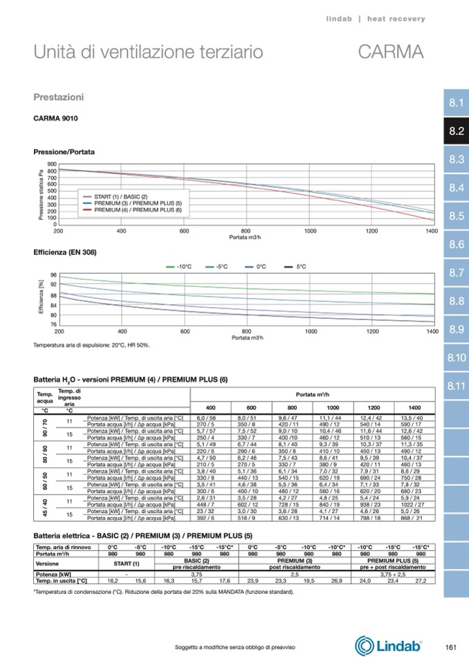 Temperatura aria di espulsione: 20°C, HR 50%.