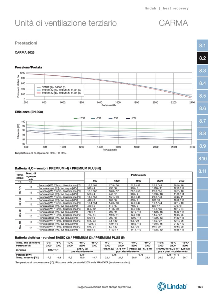 Temperatura aria di espulsione: 20°C, HR 50%.