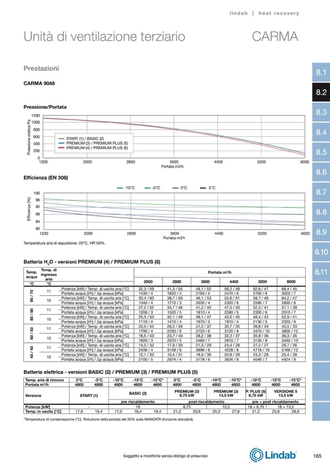 Temperatura aria di espulsione: 20°C, HR 50%.