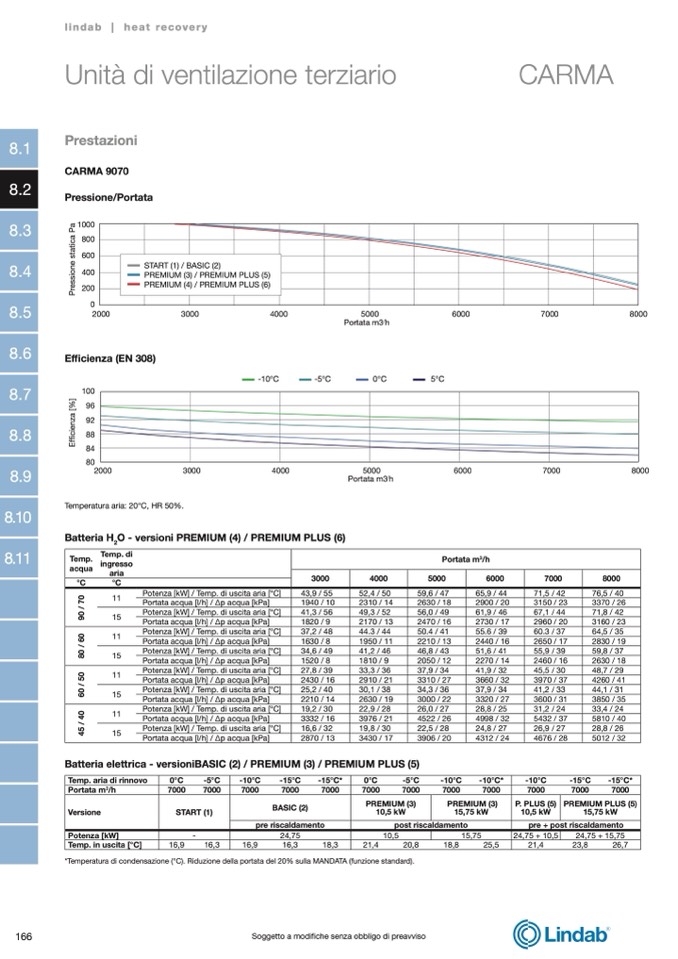 *Temperatura di condensazione (°C). Riduzione della portata del 20% sulla MANDATA (funzione standard).
