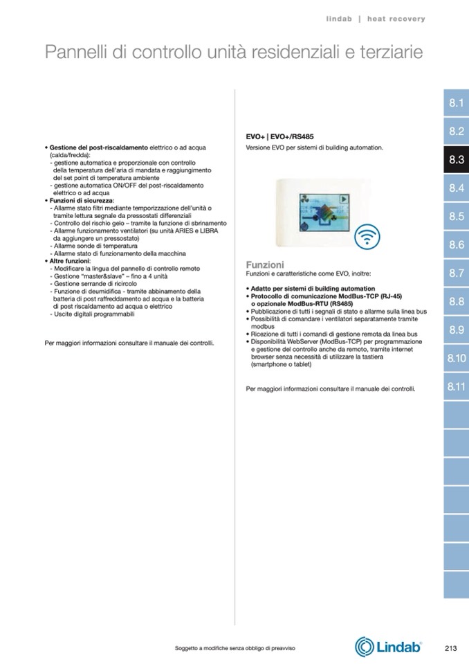 • Gestione del post-riscaldamento elettrico o ad acqua