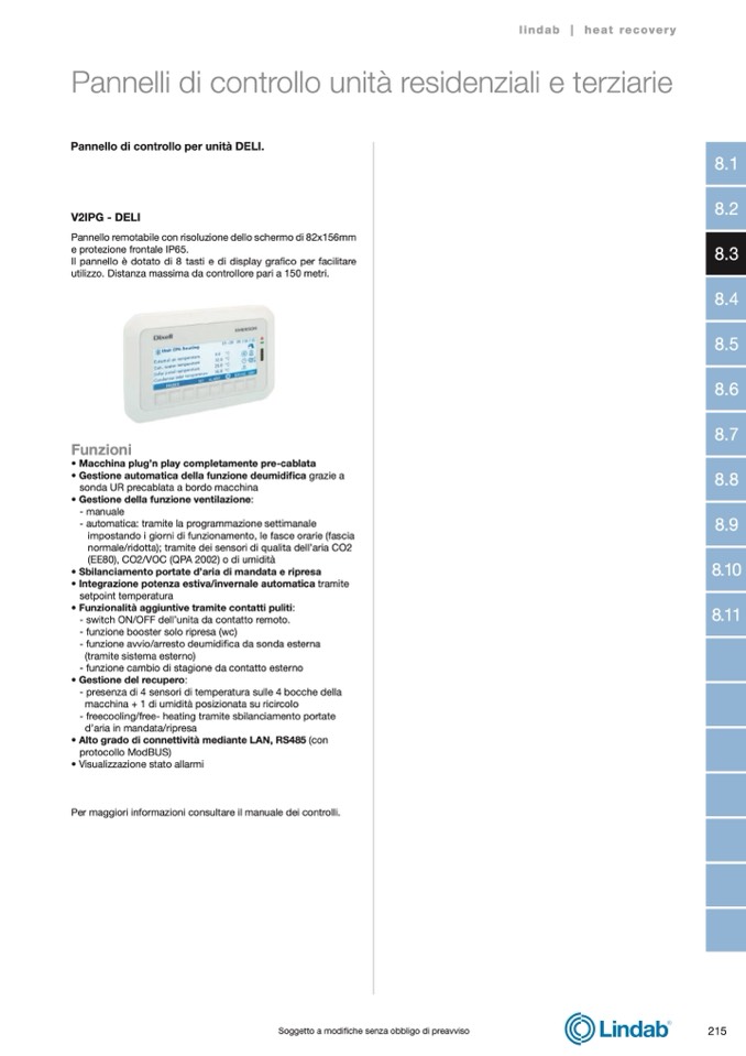 Pannello di controllo per unità DELI.