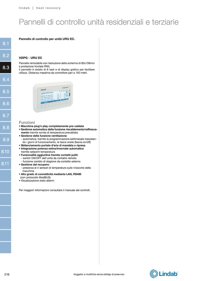 Il pannello è dotato di 8 tasti e di display grafico per facilitare