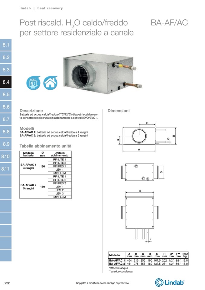 BA-AF/AC 2: batteria ad acqua calda/fredda a 5 ranghi