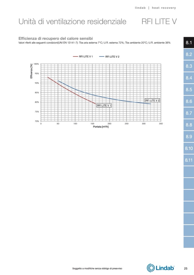 Valori riferiti alle seguenti condizioni(UNI EN 13141-7): Tbs aria esterna 7°C; U.R. esterna 72%; Tbs ambiente 20°C; U.R. ambiente 38%