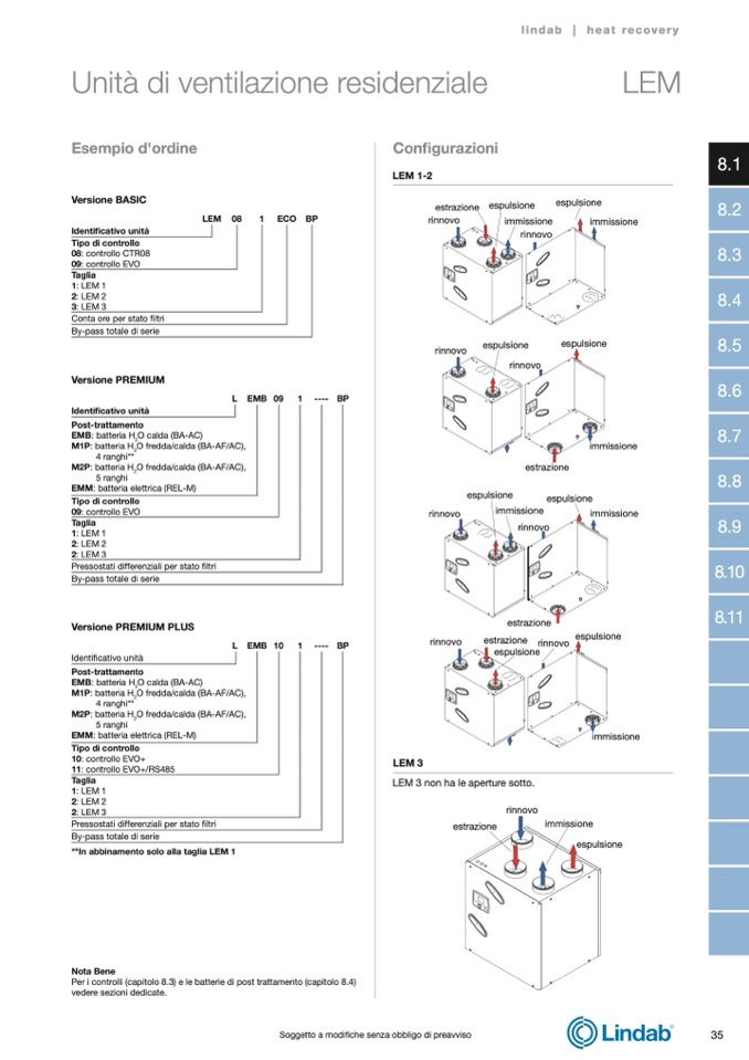 Per i controlli (capitolo 8.3) e le batterie di post trattamento (capitolo 8.4)