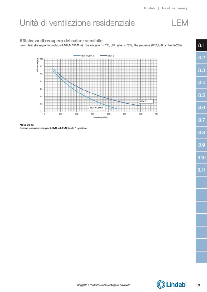 Valori riferiti alle seguenti condizioni(UNI EN 13141-7): Tbs aria esterna 7°C; U.R. esterna 72%; Tbs ambiente 20°C; U.R. ambiente 28%