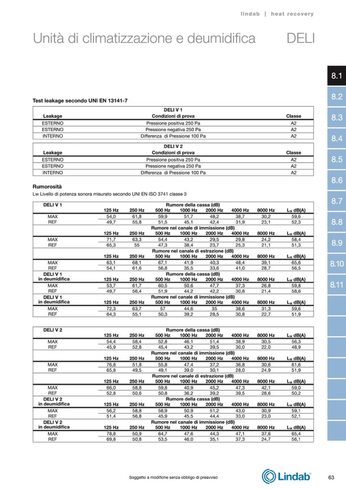 Lw Livello di potenza sonora misurato secondo UNI EN ISO 3741 classe 3