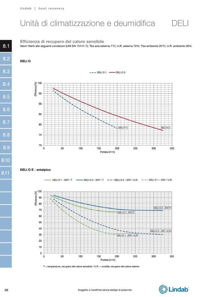 T = temperatura, recupero del calore sensibile / U.R. = umidità, recupero del calore latente