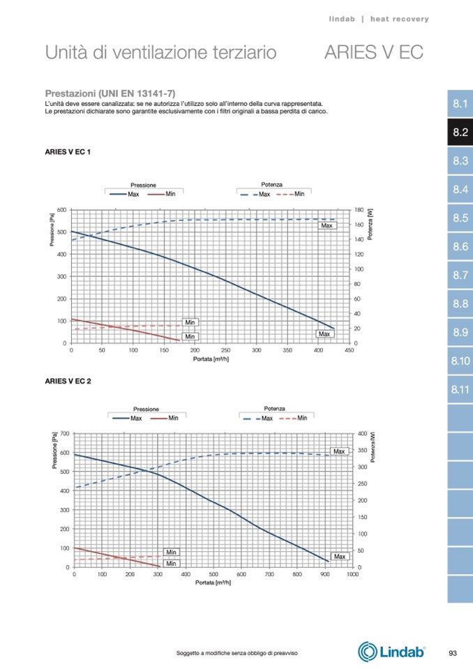 Le prestazioni dichiarate sono garantite esclusivamente con i filtri originali a bassa perdita di carico.
