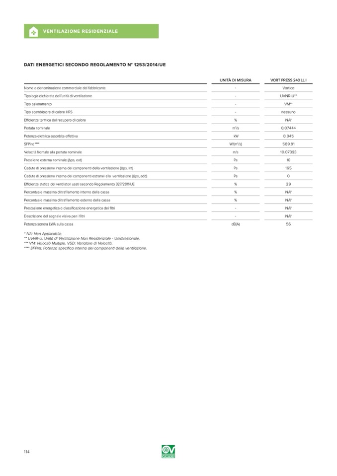 * NA: Non Applicabile.