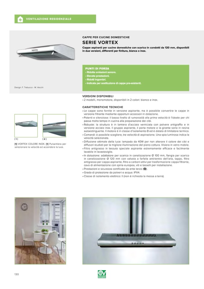 Cappe aspiranti per cucine domestiche con scarico in condotti da 120 mm, disponibili
