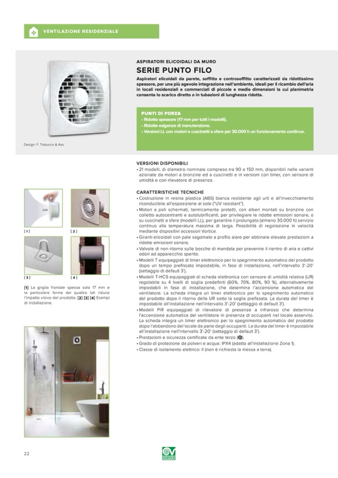 Aspiratori elicoidali da parete, soffitto e controsoffitto caratterizzati da ridottissimo