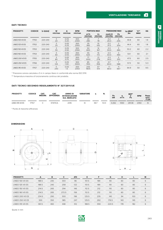 DATI TECNICI SECONDO REGOLAMENTO N° 327/2011/UE