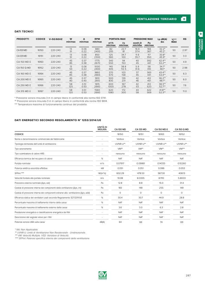 *** VM: Velocità Multiple. VSD: Variatore di Velocità.