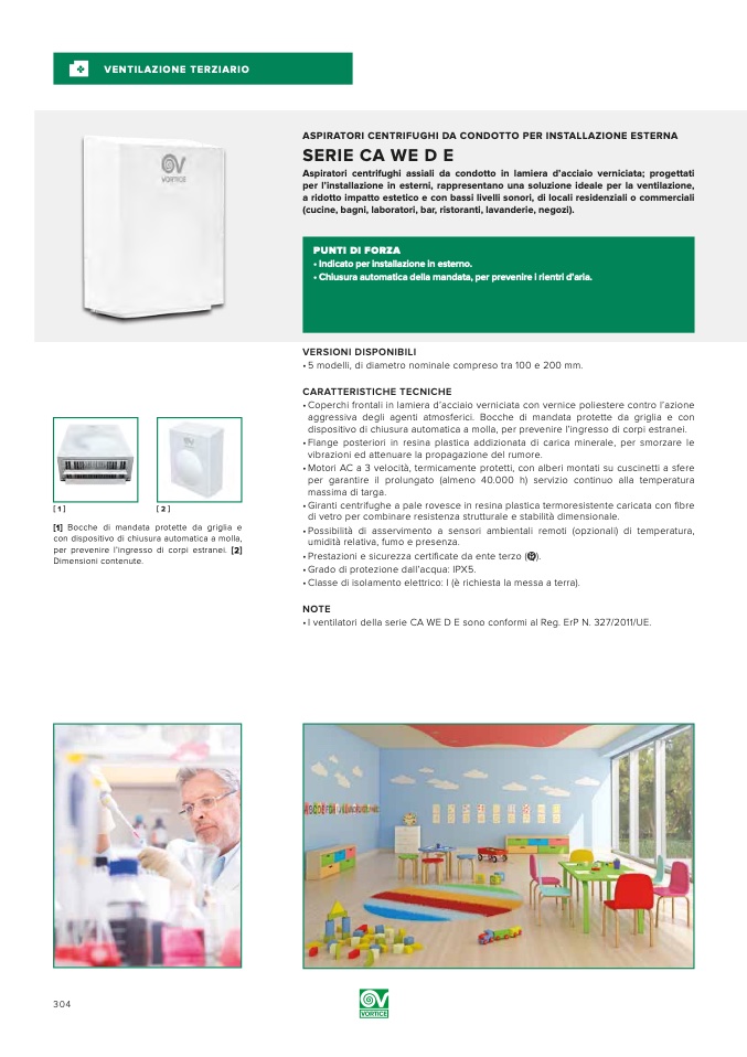 • I ventilatori della serie CA WE D E sono conformi al Reg. ErP N. 327/2011/UE.