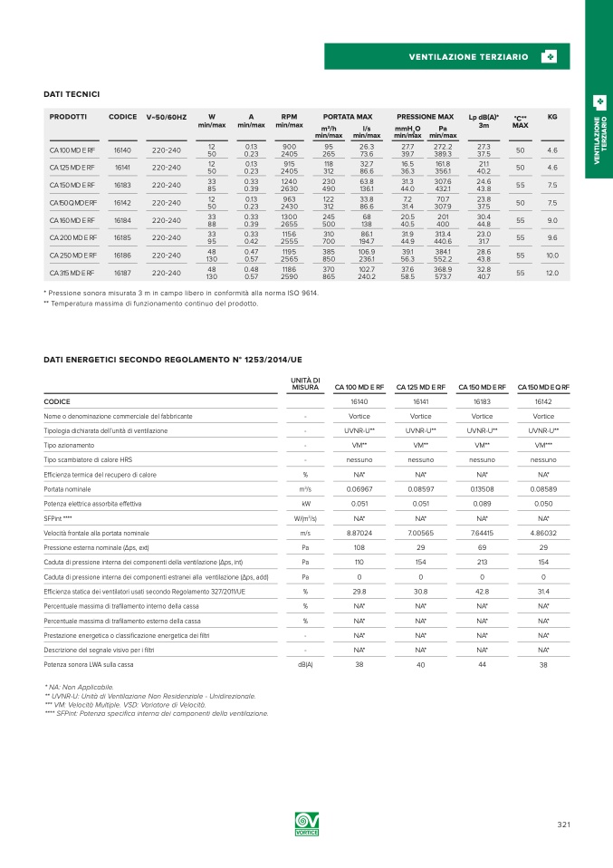 *** VM: Velocità Multiple. VSD: Variatore di Velocità.