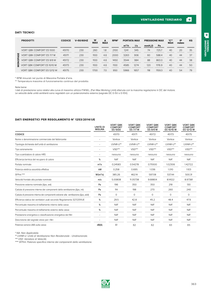 DATI ENERGETICI PER REGOLAMENTO N° 1253/2014/UE