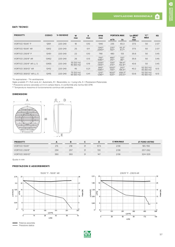 Sigle prodotti: P = Pull cord, A = Automatic, R = Reversible, LL = Long Life, S = Prestazioni Potenziate.