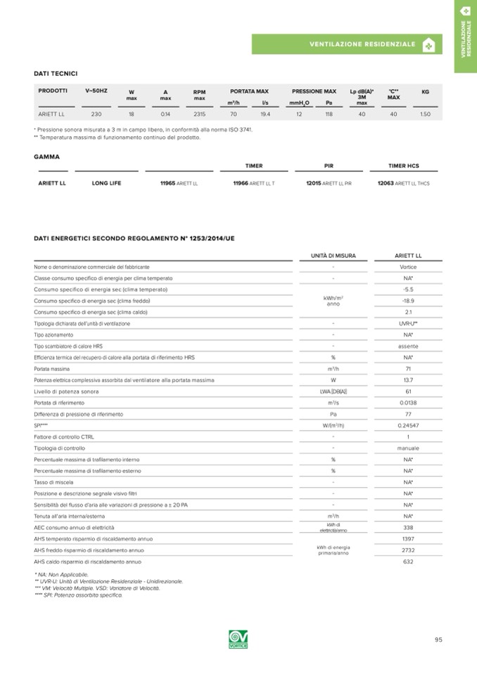 *** VM: Velocità Multiple. VSD: Variatore di Velocità.