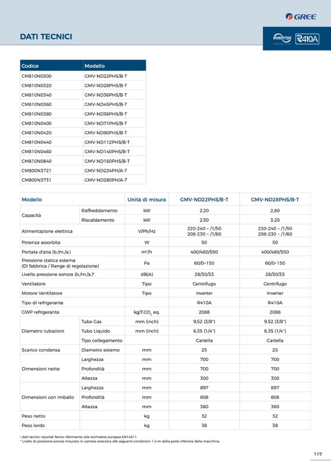 I dati tecnici riportati fanno riferimento alla normativa europea EN14511.