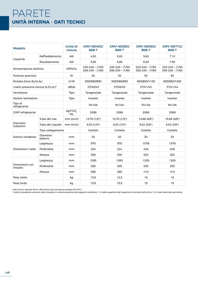 I dati tecnici riportati fanno riferimento alla normativa europea EN14511.