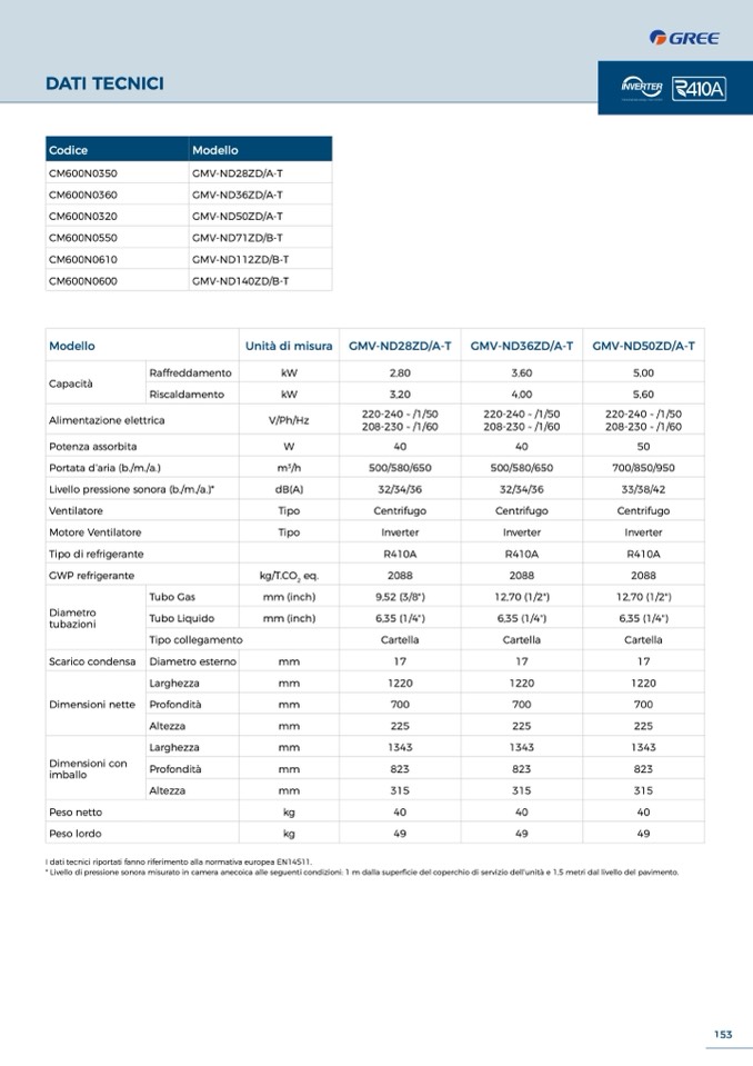 I dati tecnici riportati fanno riferimento alla normativa europea EN14511.