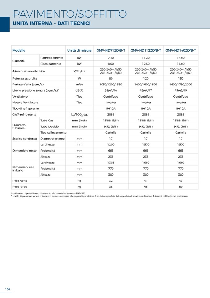* Livello di pressione sonora misurato in camera anecoica alle seguenti condizioni: 1 m dalla superficie del coperchio di servizio dell’unità e 1,5 metri dal livello del pavimento.