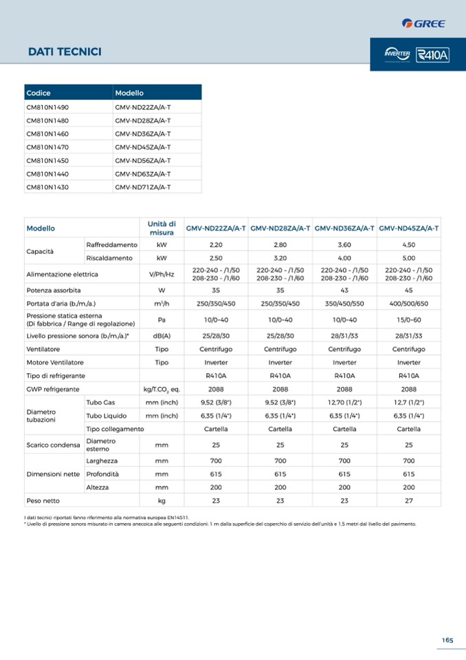 I dati tecnici riportati fanno riferimento alla normativa europea EN14511.