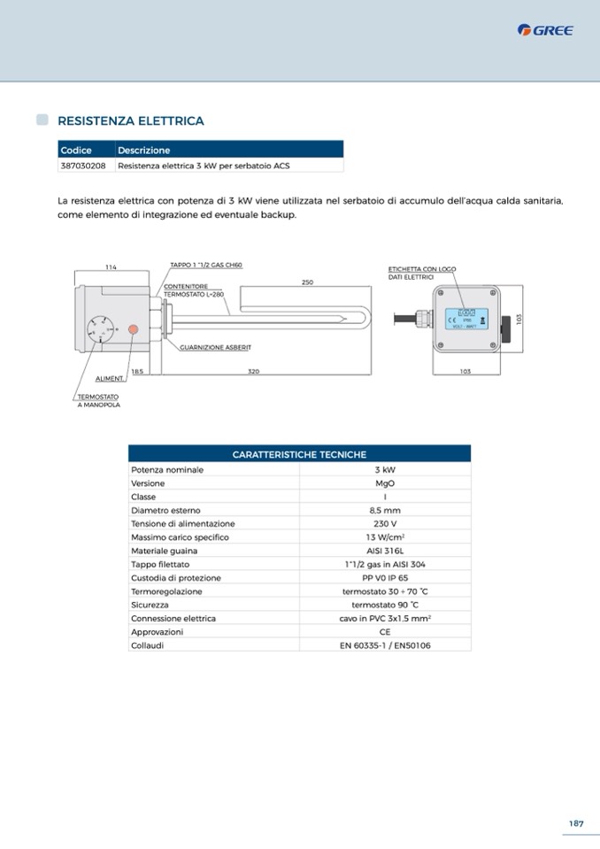 387030208 Resistenza elettrica 3 kW per serbatoio ACS