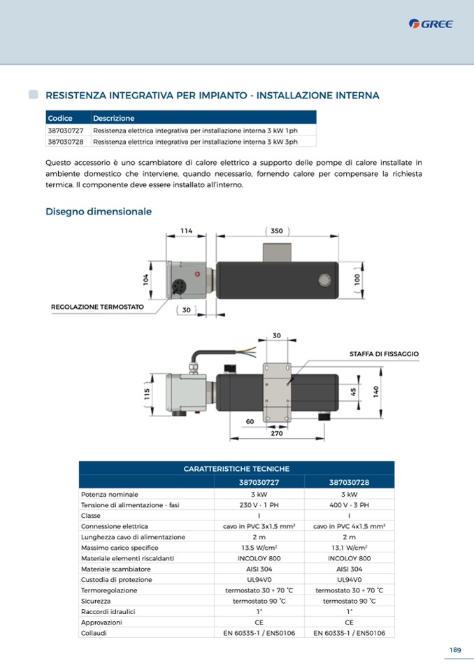 387030727 Resistenza elettrica integrativa per installazione interna 3 kW 1ph