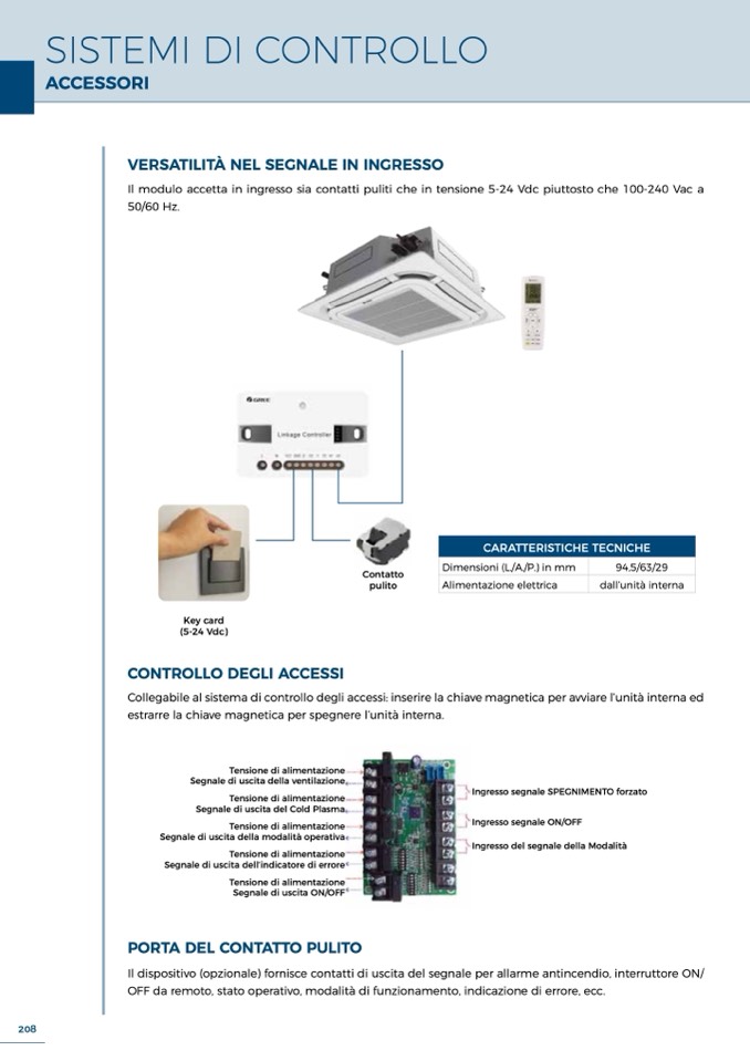Collegabile al sistema di controllo degli accessi: inserire la chiave magnetica per avviare l’unità interna ed