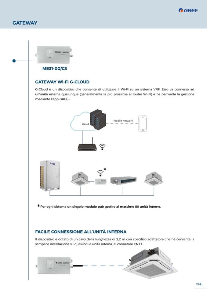 G-Cloud è un dispositivo che consente di utilizzare il Wi-Fi su un sistema VRF. Esso va connesso ad