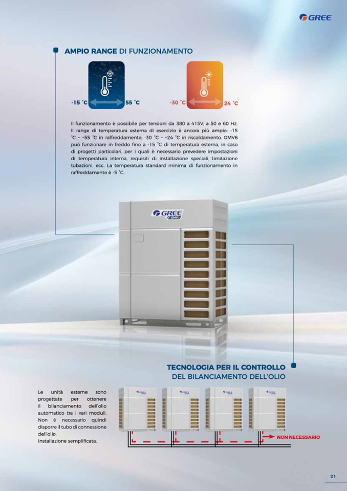 °C ~ +55 °C in raffreddamento; -30 °C ~ +24 °C in riscaldamento. GMV6