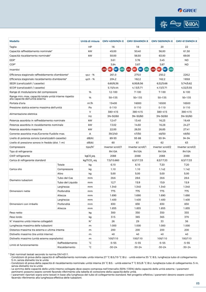 • I parametri riportati sopra sono testati in base alla lunghezza del tubo di collegamento standard. Nel progetto effettivo, i parametri devono essere corretti