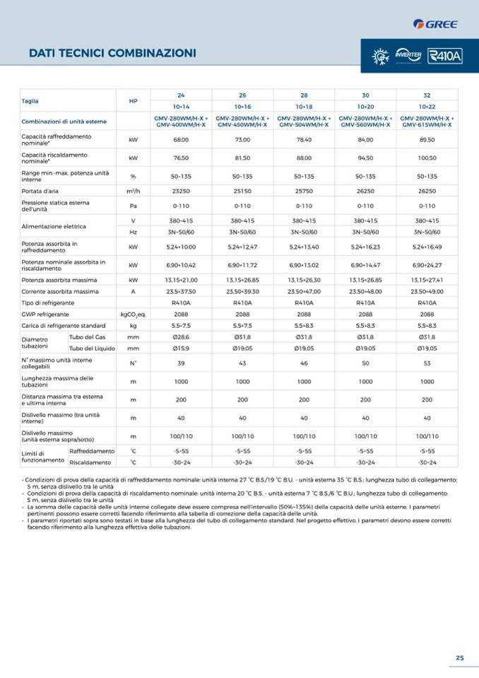 • La somma delle capacità delle unità interne collegate deve essere compresa nell’intervallo (50%~135%) della capacità delle unità esterne. I parametri