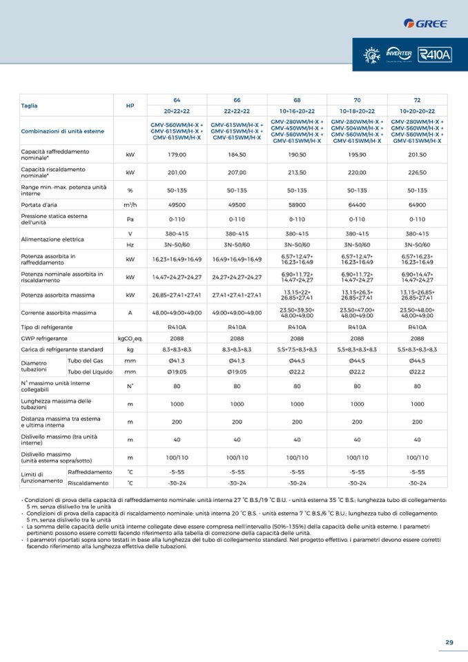 • I parametri riportati sopra sono testati in base alla lunghezza del tubo di collegamento standard. Nel progetto effettivo, i parametri devono essere corretti