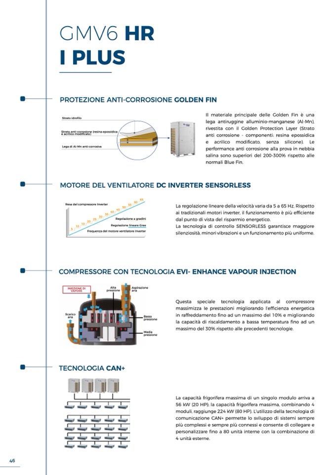 56 kW (20 HP); la capacità frigorifera massima, combinando 4