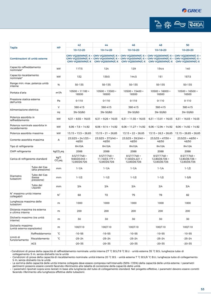 • I parametri riportati sopra sono testati in base alla lunghezza del tubo di collegamento standard. Nel progetto effettivo, i parametri devono essere corretti