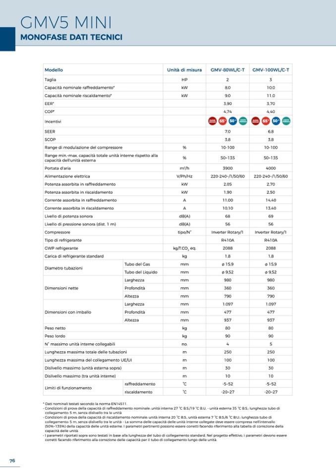• I parametri riportati sopra sono testati in base alla lunghezza del tubo di collegamento standard. Nel progetto effettivo, i parametri devono essere