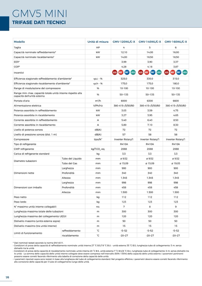 • I parametri riportati sopra sono testati in base alla lunghezza del tubo di collegamento standard. Nel progetto effettivo, i parametri devono essere corretti facendo riferimento