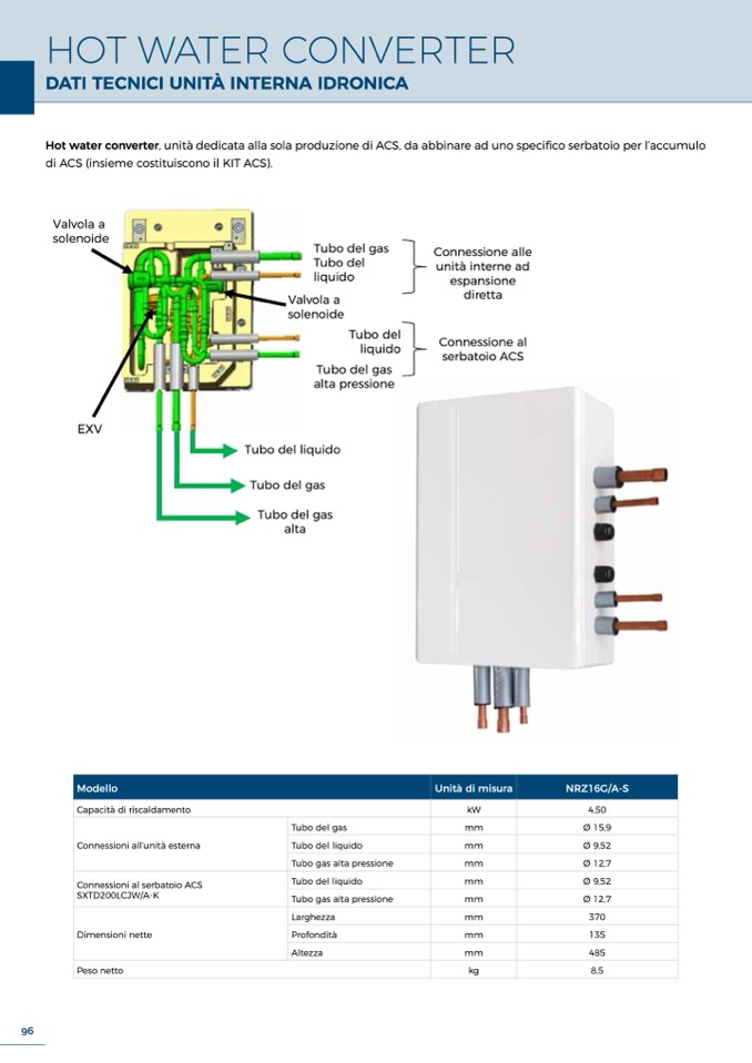 Hot water converter, unità dedicata alla sola produzione di ACS, da abbinare ad uno specifico serbatoio per l’accumulo
