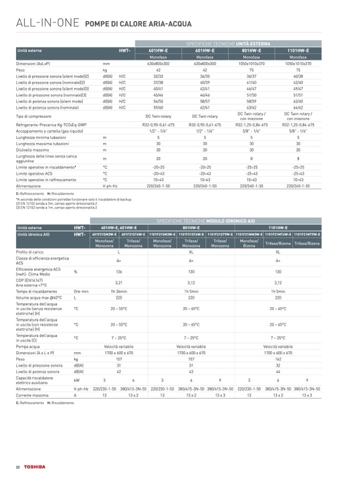 SPECIFICHE TECNICHE UNITÀ ESTERNA