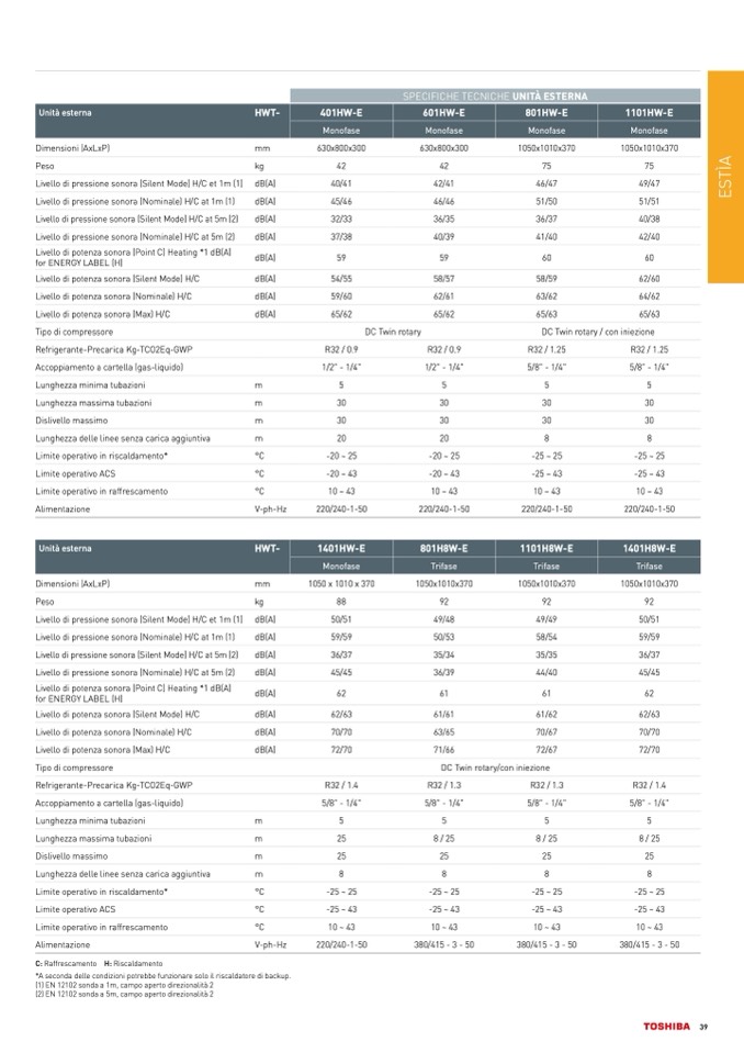 SPECIFICHE TECNICHE UNITÀ ESTERNA