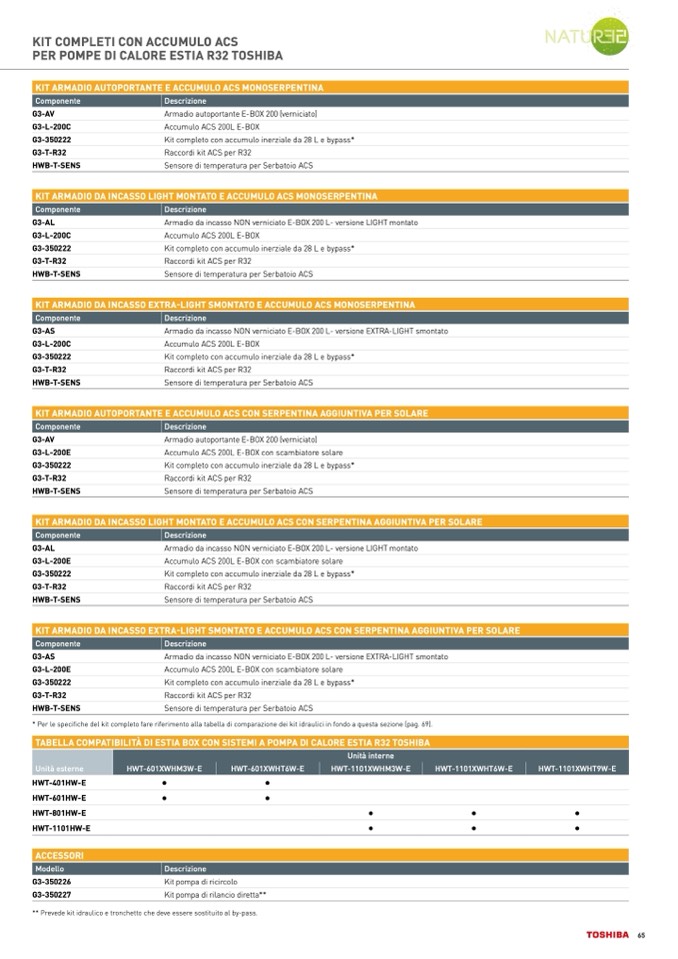 TABELLA COMPATIBILITÀ DI ESTIA BOX CON SISTEMI A POMPA DI CALORE ESTIA R32 TOSHIBA